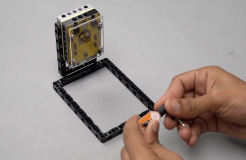 4. Bring the Roboki and fix it onto the brick. Ensure the alignment is proper, and press down firmly to make sure the Roboki is well-attached.